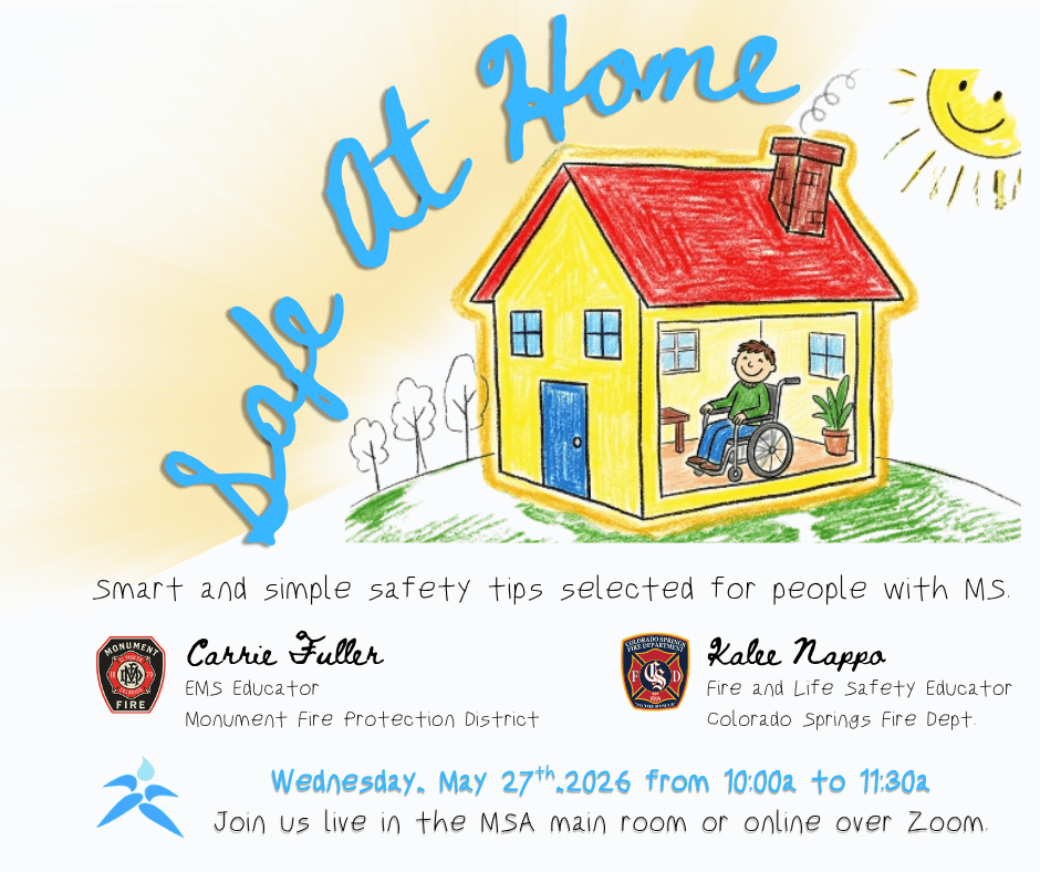 Planning ahead for emergencies such as fire or falls can help you recover quickly or even prevent them in the first place. Join Carrie Fuller, EMS Educator of the Monument Fire Protection District, and Kalee Nappo, Fire and Life Safety Educator of the Colorado Springs Fire Department, for some smart and simple safety tips selected for people with MS.